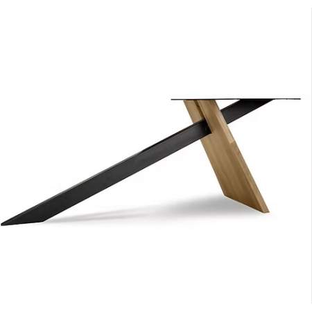 Pied de table 747 en acier laqué noir mat et bois